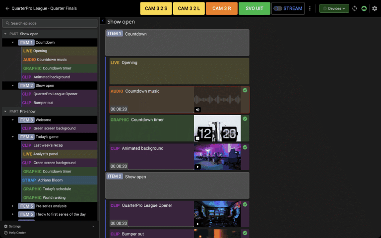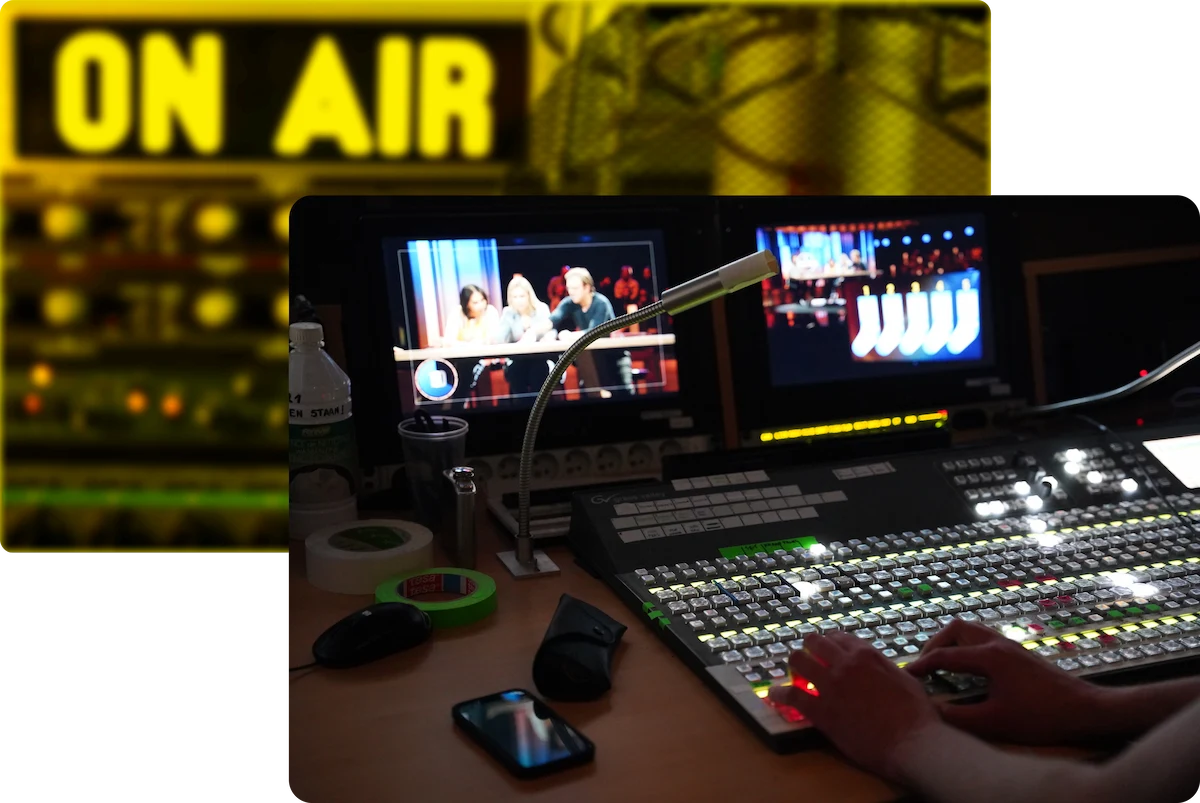 We offer a full control room in a single portable device. Your rundown and workflow remain unchanged, regardless of the device, location, or output — be it for TV, Radio, Digital Livestreams, Location-Based Live Events, and more.
