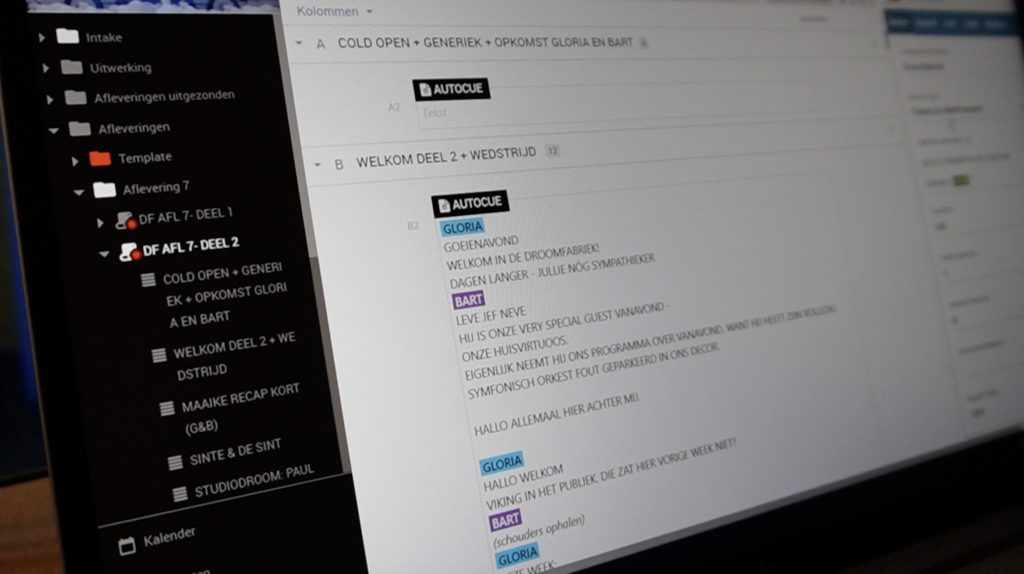 The synchronization of tools across the whole production with Cuez was the game-changer for ‘The Dream Factory’. Being able to see changes in the script instantaneously, without the need to re-print it, saved time and effort. Bert Geerts, the assistant director, said that Cuez, as a cloud-based rundown platform, not only helped the team stay synced but also prevented the loss of files and reduced the chaos of a TV show production, as it usually happens to be quite messy.