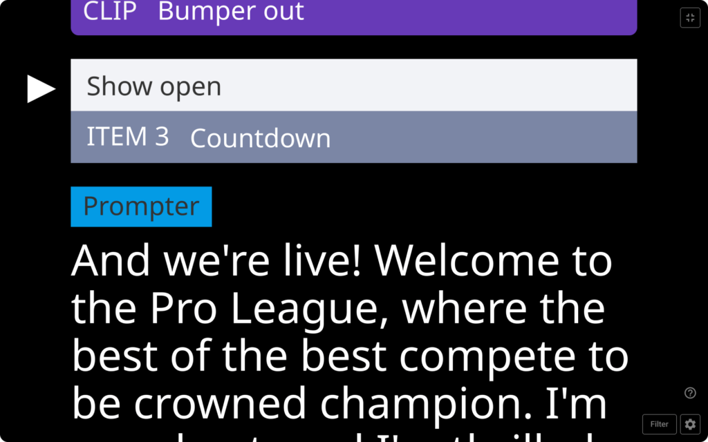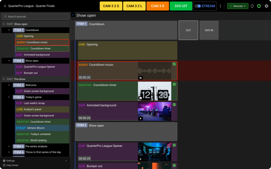 Cuez works harmoniously with vMix, Tricaster, Blackmagic devices and other tools like broadcast equipment, allowing directors to focus more on their production’s overall quality.